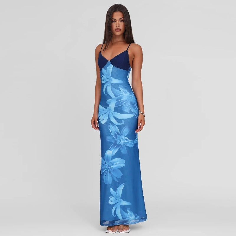 Mesh Slim Fit Patchwork Sling Dress Women